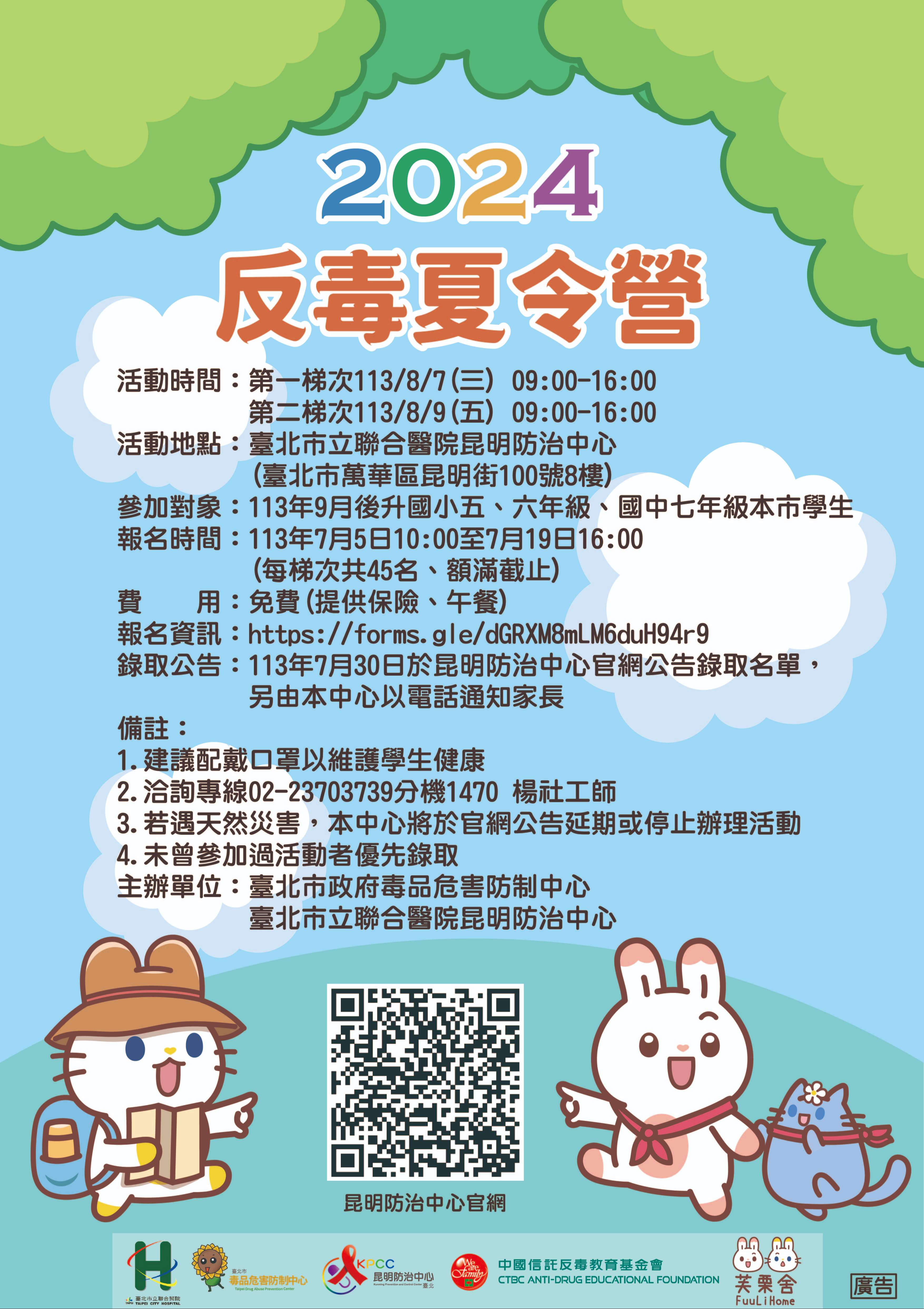 八、檢附營隊宣傳海報一份,請協助公告宣傳,報名資訊可至 昆明防治中心官網查詢。