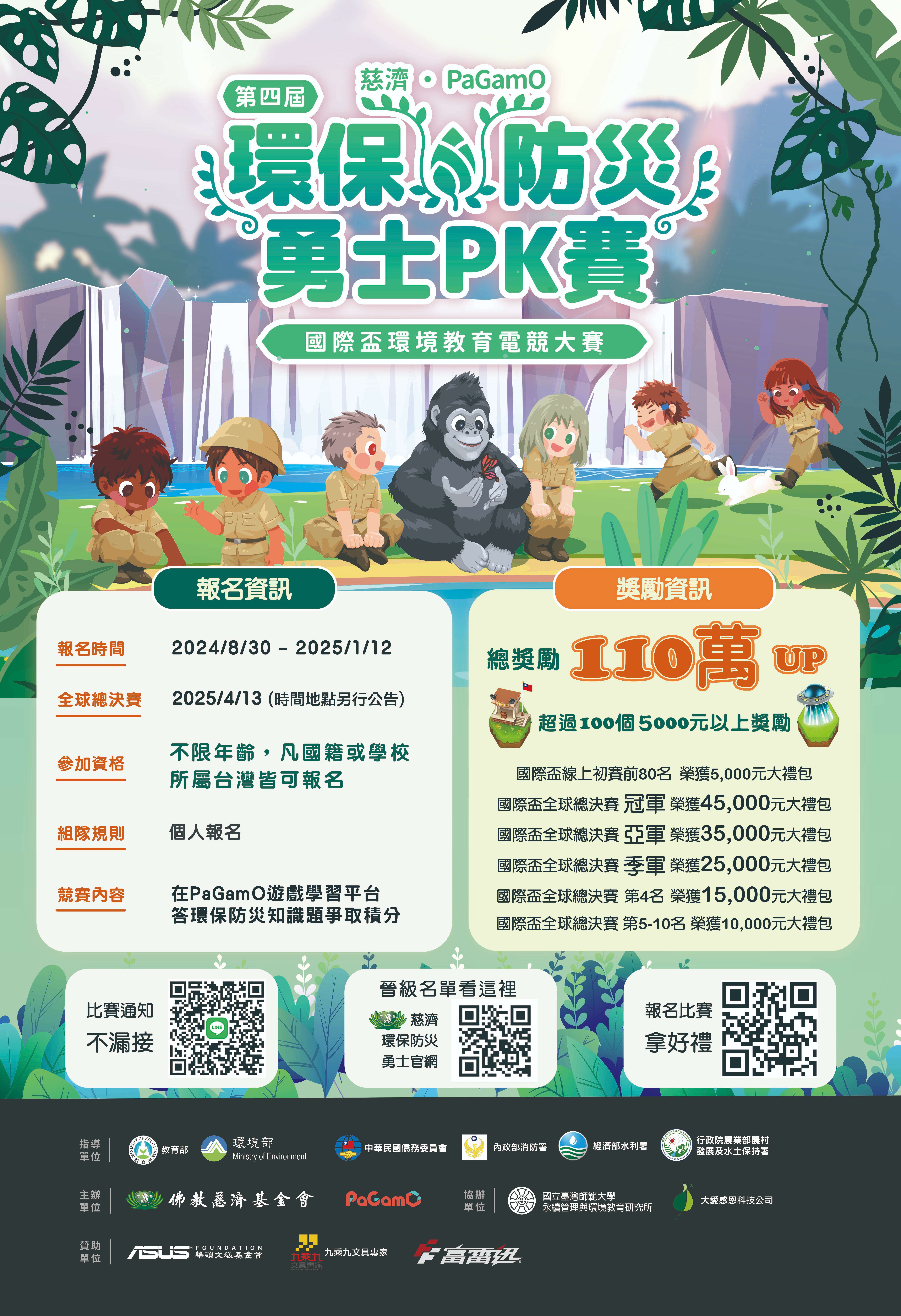 七、檢附慈濟xPaGamO【臺北市】縣市盃環保防災勇士PK賽活動 簡章、環保防災電競DM及國際盃-2024慈濟環保防災勇士PK 賽海報各1份。