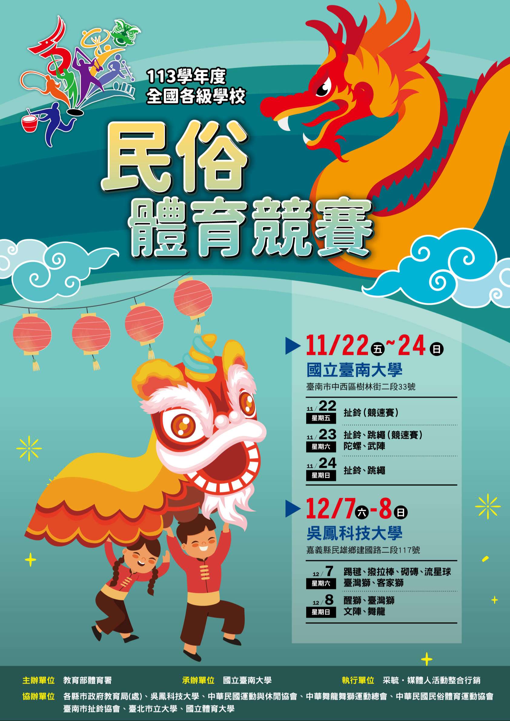 四、最新消息可逕至「民俗體育發展中心」網站瀏覽(網址 ),如有相關問題請逕洽 國 立臺南大學王瑞任先生(06-2133111#575;06- 2148642)。