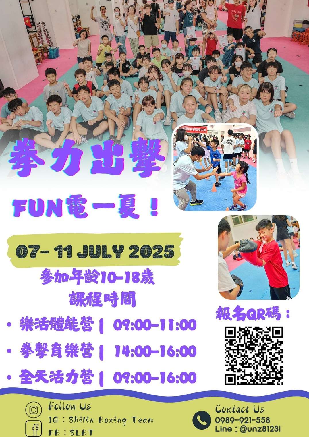 (2)拳擊育樂營:114年7月7日至11日 下午 14:00-16:00共計 5 天 。