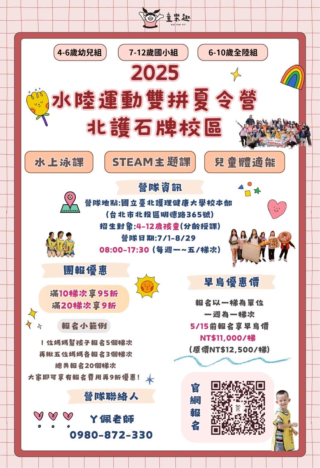 一、本校推廣教育中心與童博健康管理工作室合作開辦「2025 水陸運動夏令營」即日起受理報名。