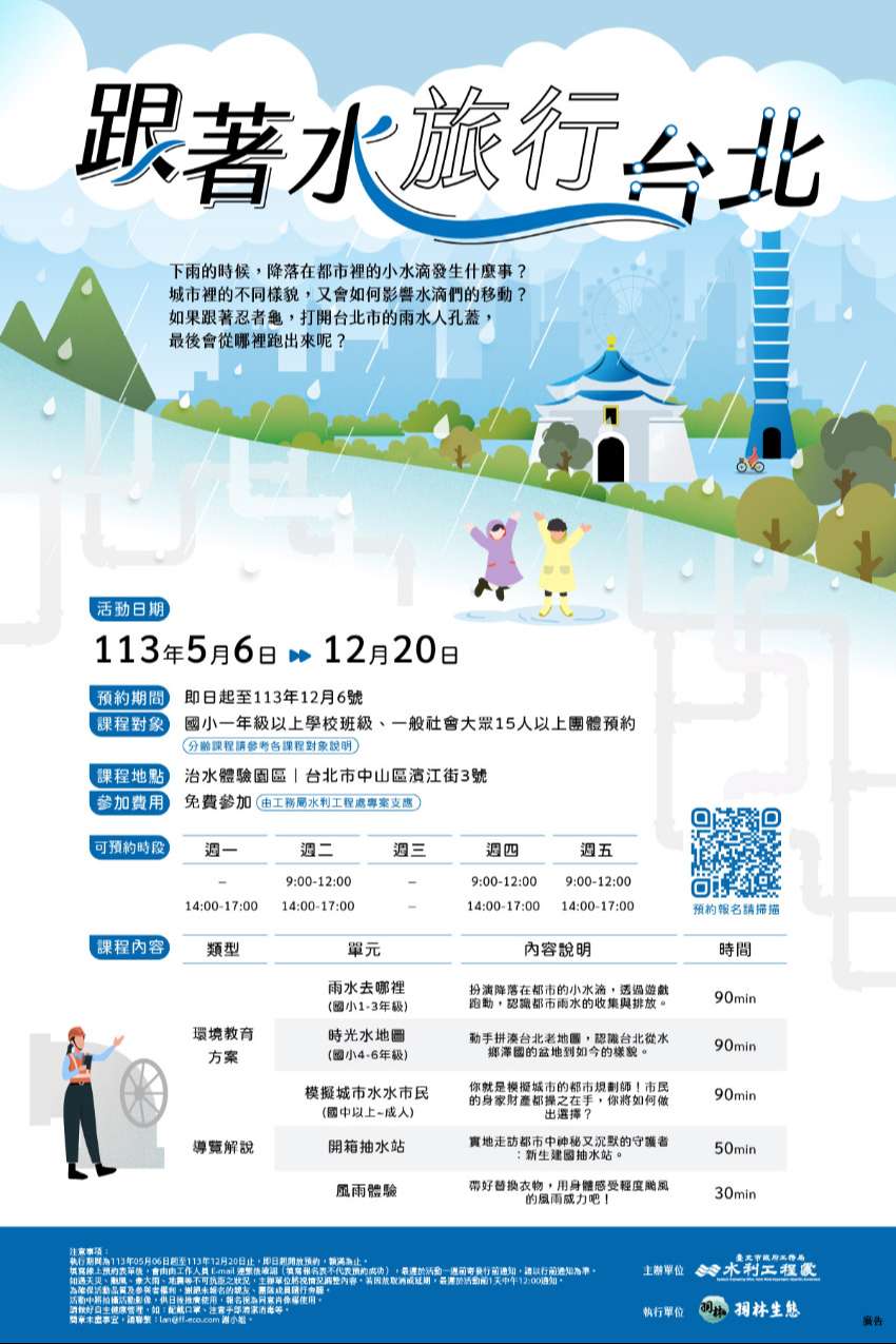 一、旨揭課程包含防減災與氣候變遷調適議題,可搭配國中小 及高中之社會與自然領域教學,即日起至113年12月6日開 放國小一年級以上學校班級及一般社會團體免費預約,預 約網址。