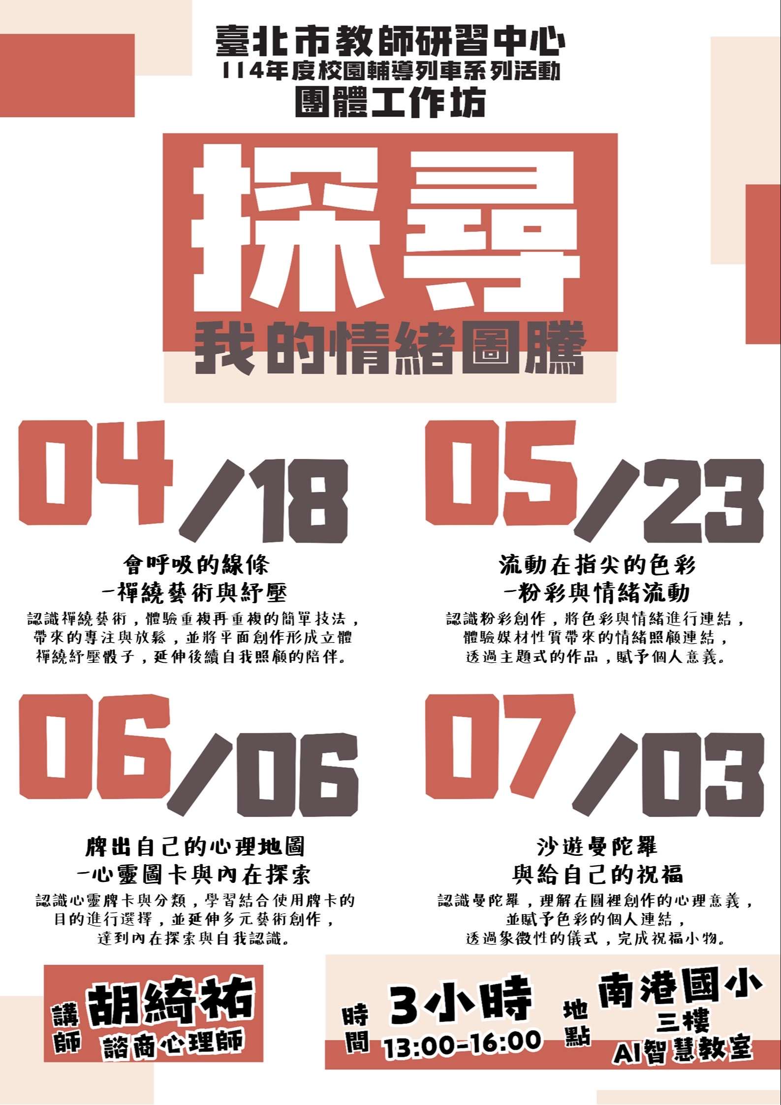 (三)授課講師:胡綺祐諮商心理師。